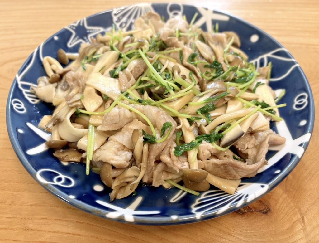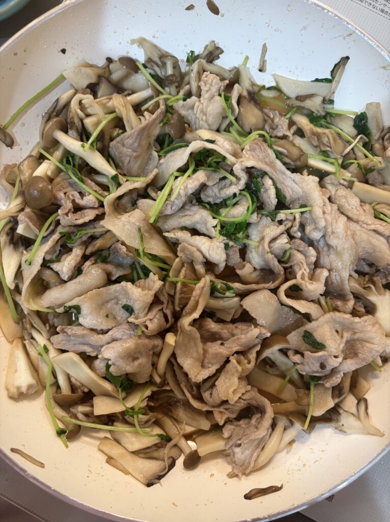 1.きのこには、うま味成分であるグルタミン酸が豊富。豚肉にはイノシン酸が豊富。グルタミン酸✖️イノシン酸でうま味の相乗効果が生まれます!