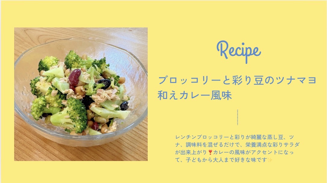 このレシピの生い立ちは、子どもが大好きなブロッコリーを使ったレシピを考えていて、どうせなら栄養満点にしたいと思い、サラダ豆、ツナを加え、子どもが好きなカレー味をアクセントにしてみたところ、子どもから大人まで美味しく食べられるサラダが完成しました❣️✨