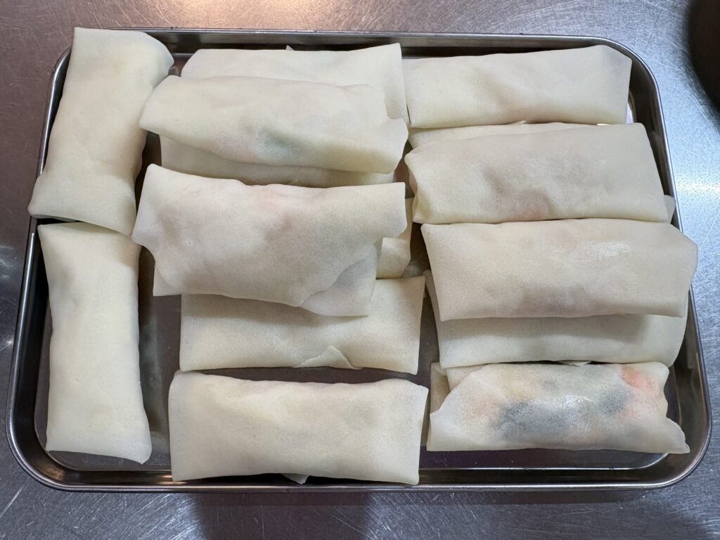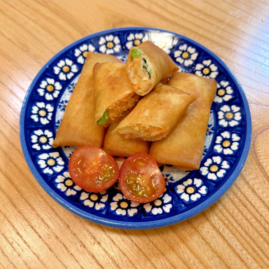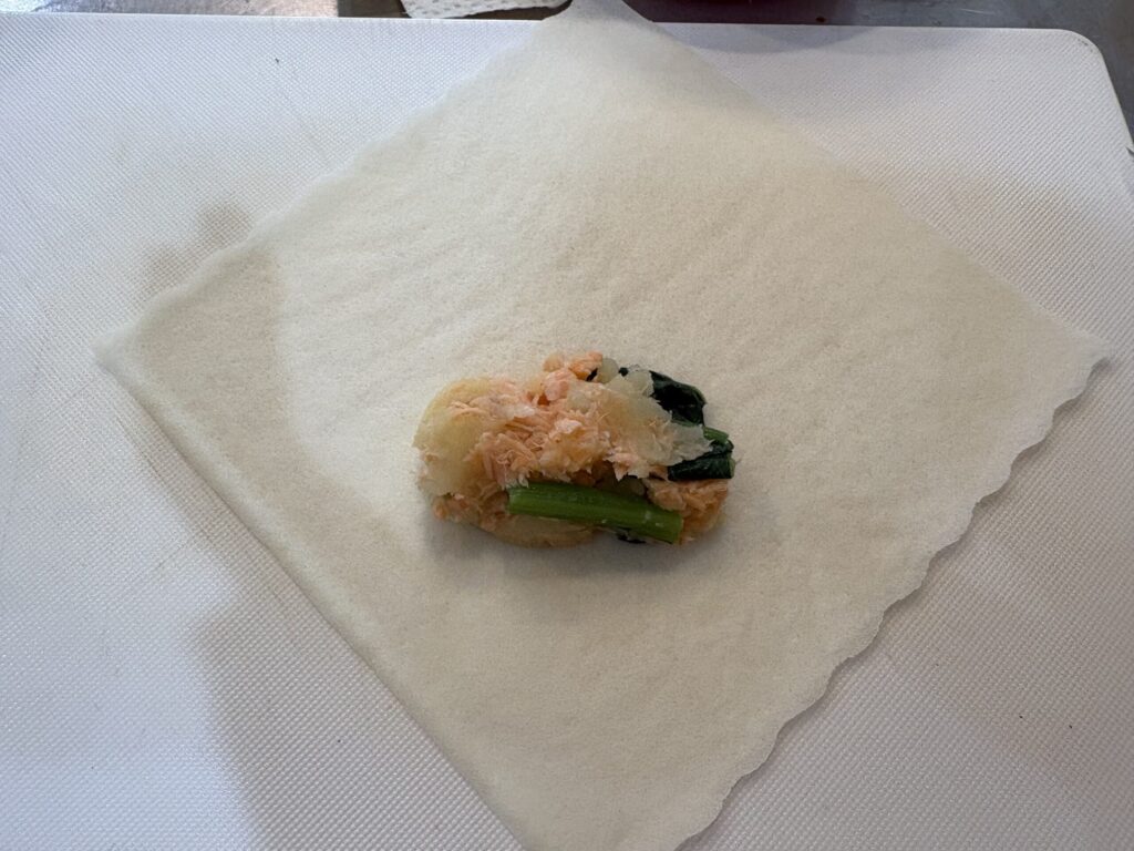塩鮭・レンチンじゃがいも・小松菜・少量バターを春巻きの皮で包んだ「鮭じゃがバター春巻き」は、